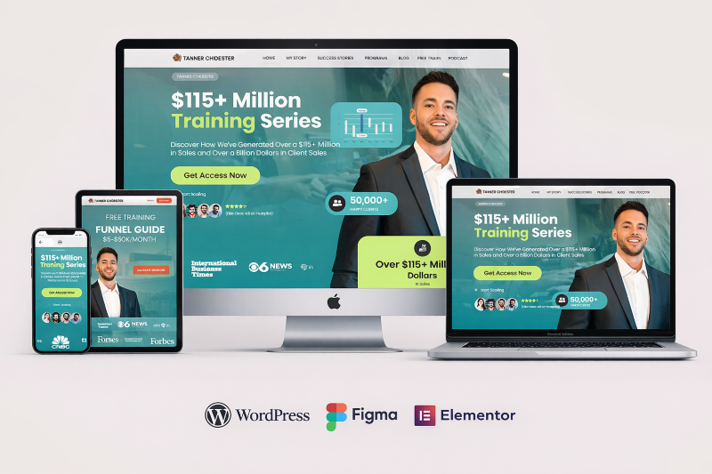 TannerChidester.com is a modern marketing website designed in Figma and developed on WordPress using Elementor.